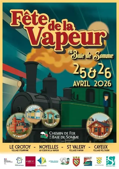 La Fête de la Vapeur 2026 revient en Baie de Somme pour un événement exceptionnel dédié aux trains à vapeur, au patrimoine ferroviaire et aux animations familiales. Organisée par le Chemin de Fer de la Baie de Somme, cette grande fête populaire invite petits et grands à vivre un voyage hors du temps à bord de locomotives historiques, au cœur d’un territoire naturel unique.